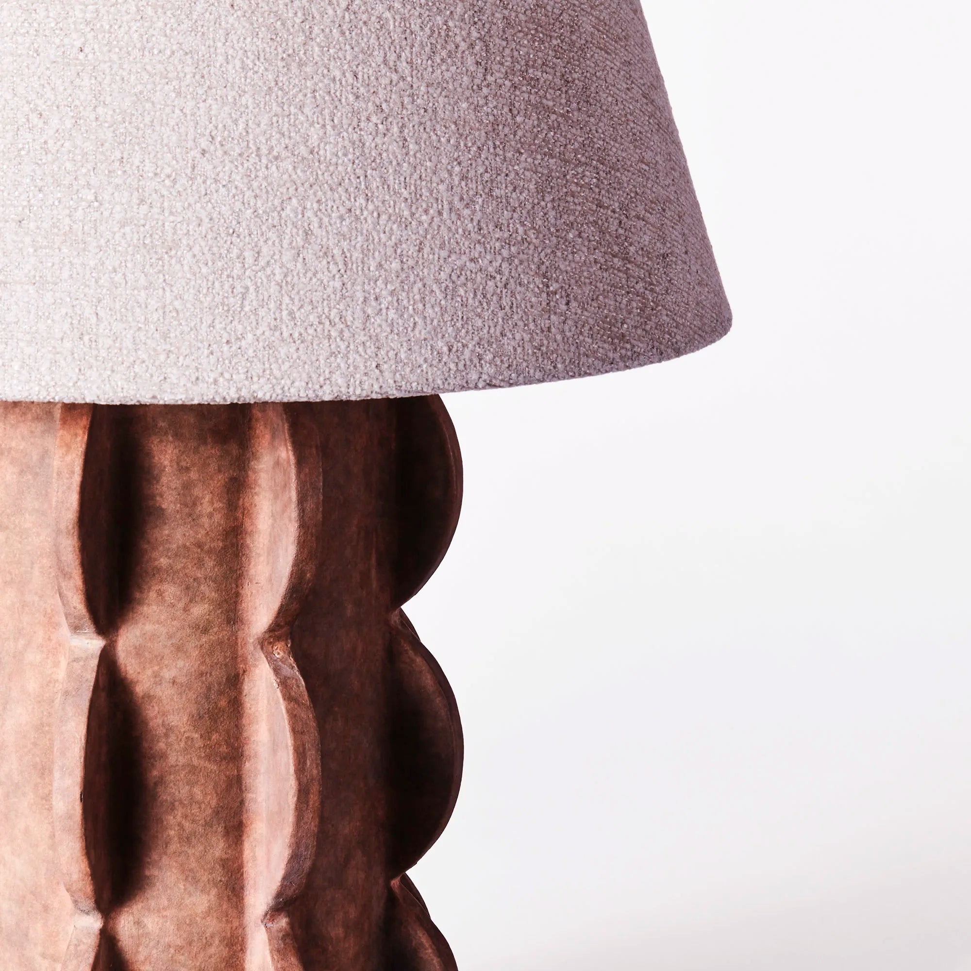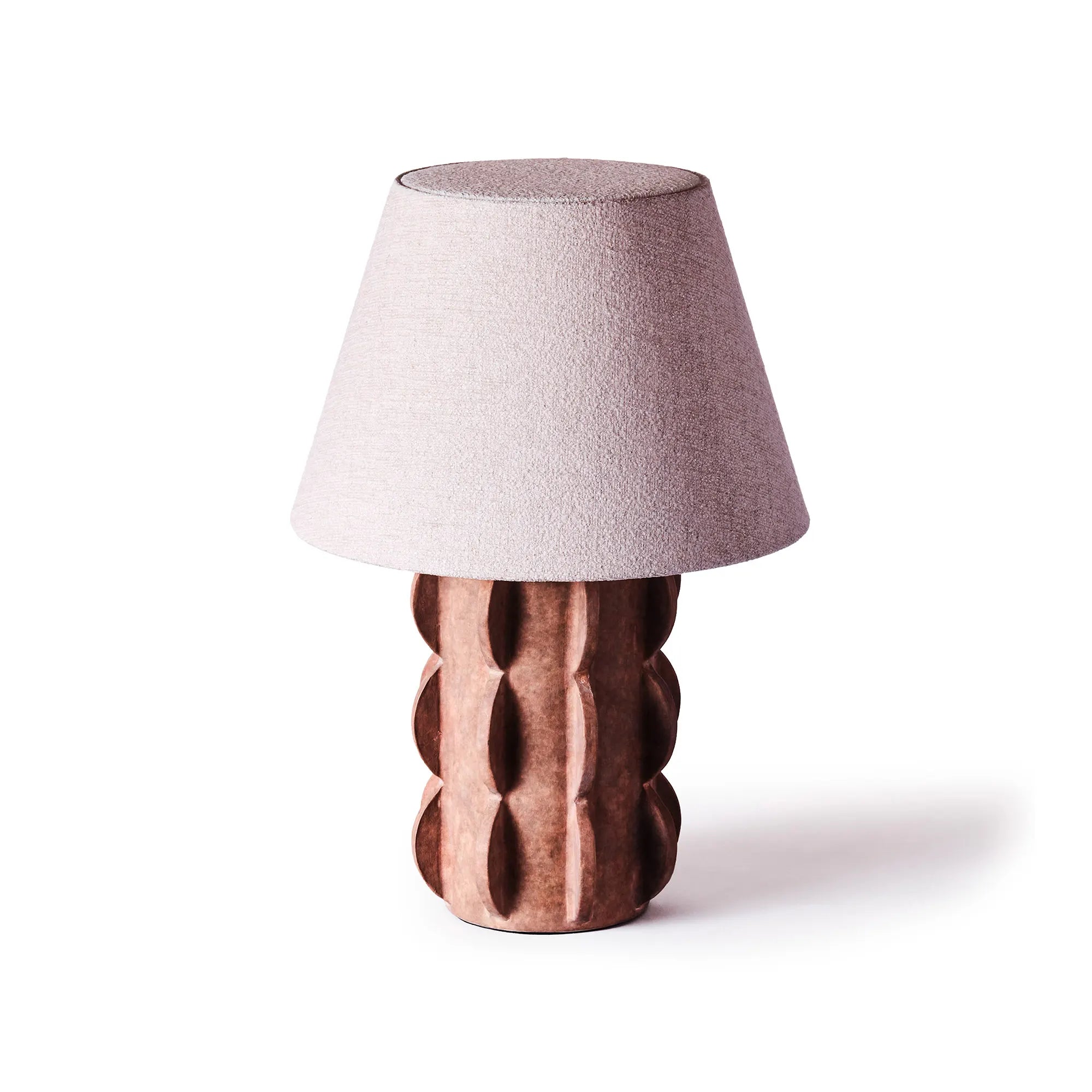 A trapezoidal textile shade spreads a soft light around the surroundings, sitting on top of the arched base. The base of the Arcissimo Table Lamp is handmade, making each piece unique. Minor differences in color and texture can be expected. In addition to the Arcissimo Table Lamp Brown Large, the series also includes a black version and a smaller size.