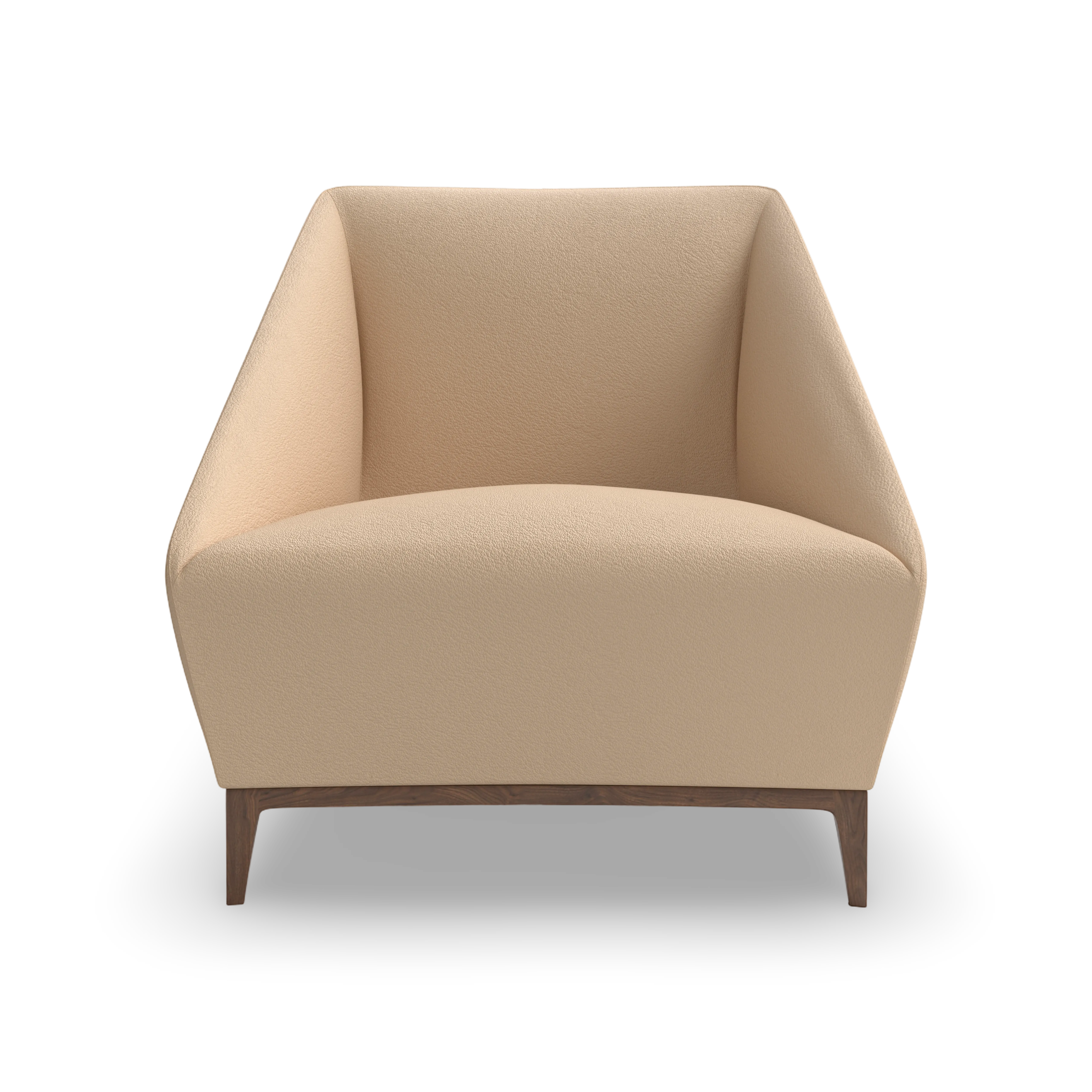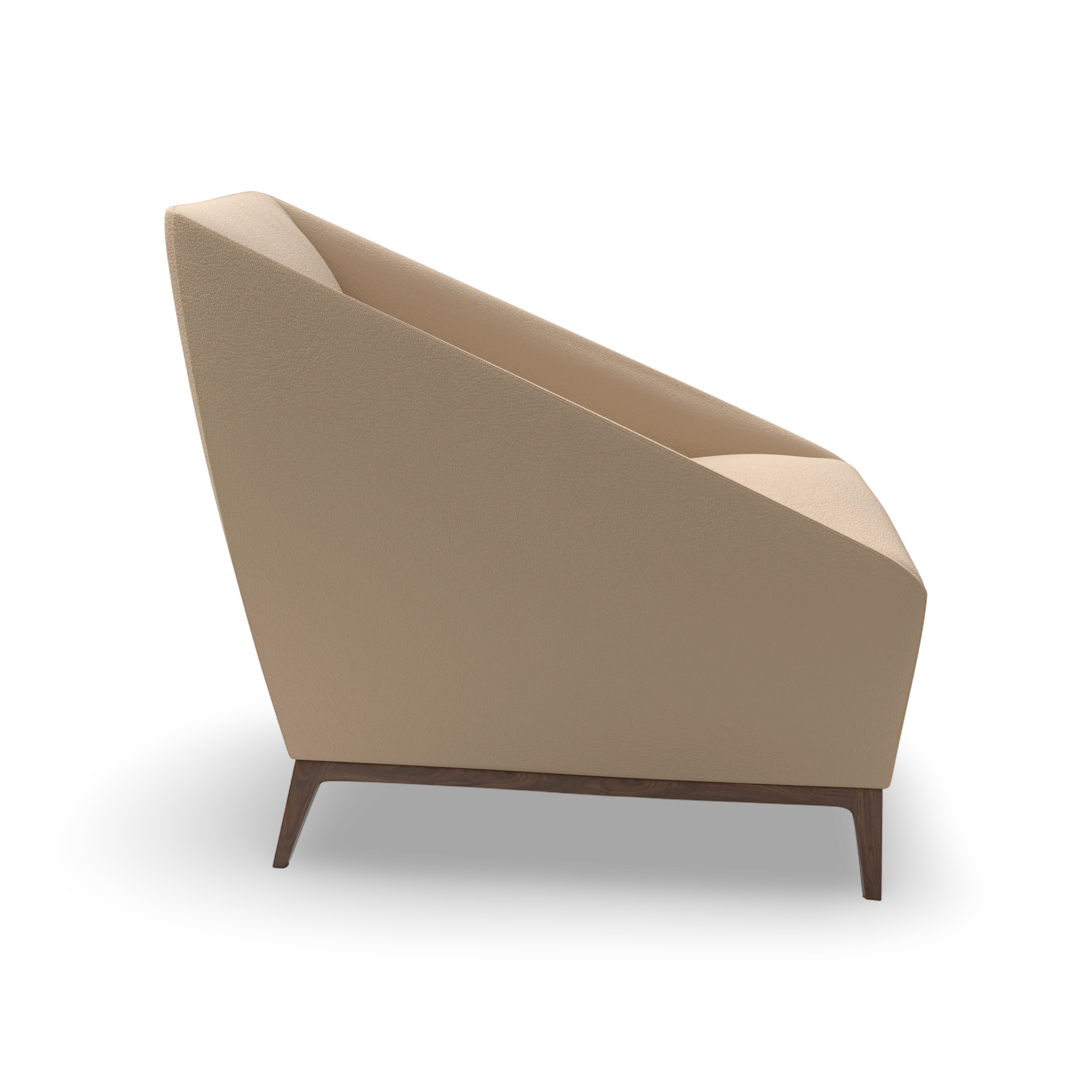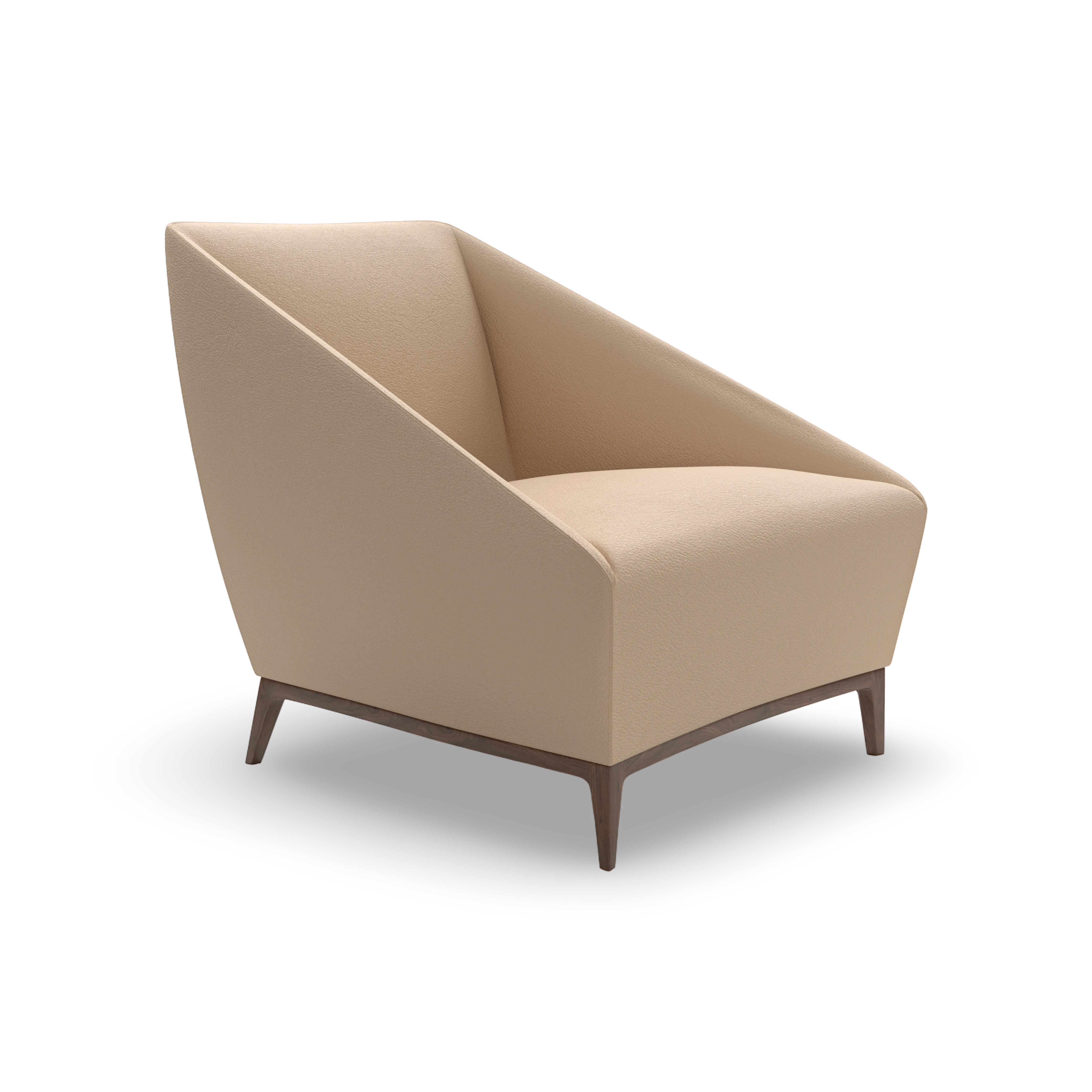 The silhouette with enveloping shapes offers a sense of intimacy and protection and expresses a great formal elegance, thanks to their perfectly calibrated proportions. Wooden frame covered with polyurethane foam of different densities and polyester fiber lining. Base in stained ash or in italian walnut. Leather or fabric covers.