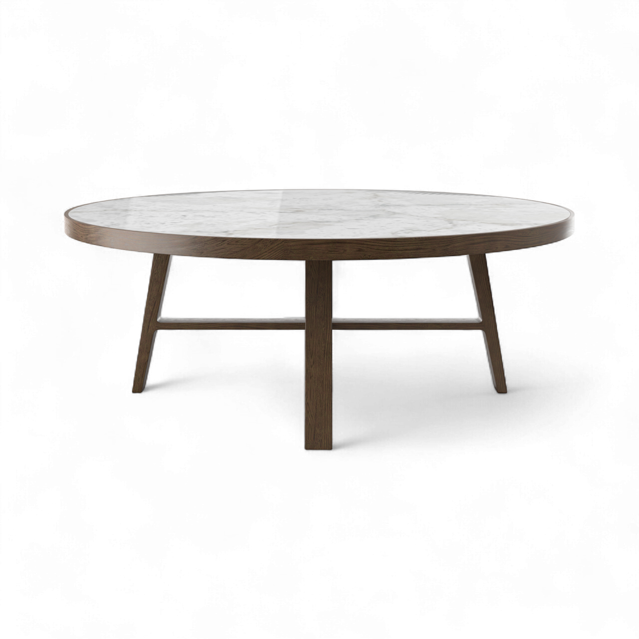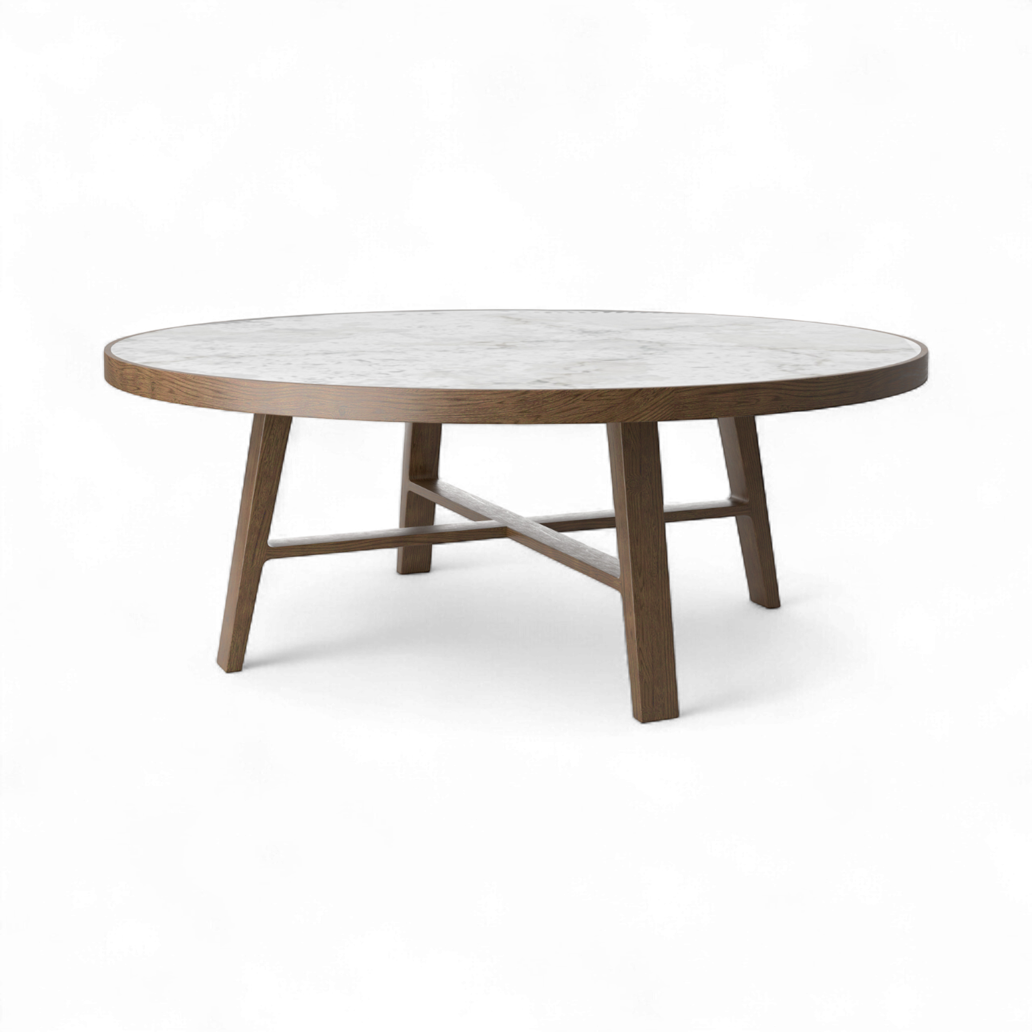 The organic material of wood encapsulates the natural beauty of marble and generates the perfect circle shape for the Compass table. A uniform circular motion builds the convivial space, which in the absence of sides and edges, becomes more fluid and free.