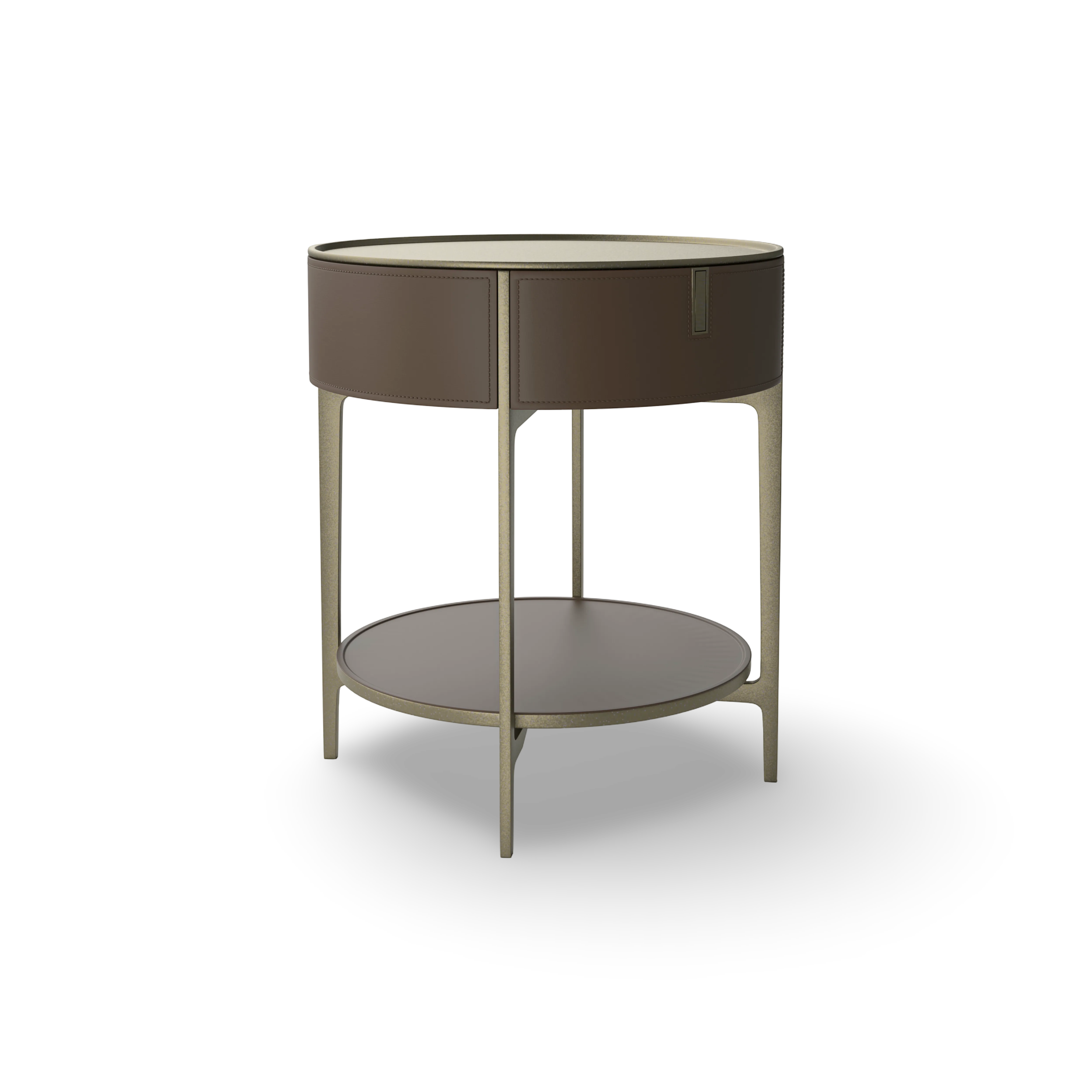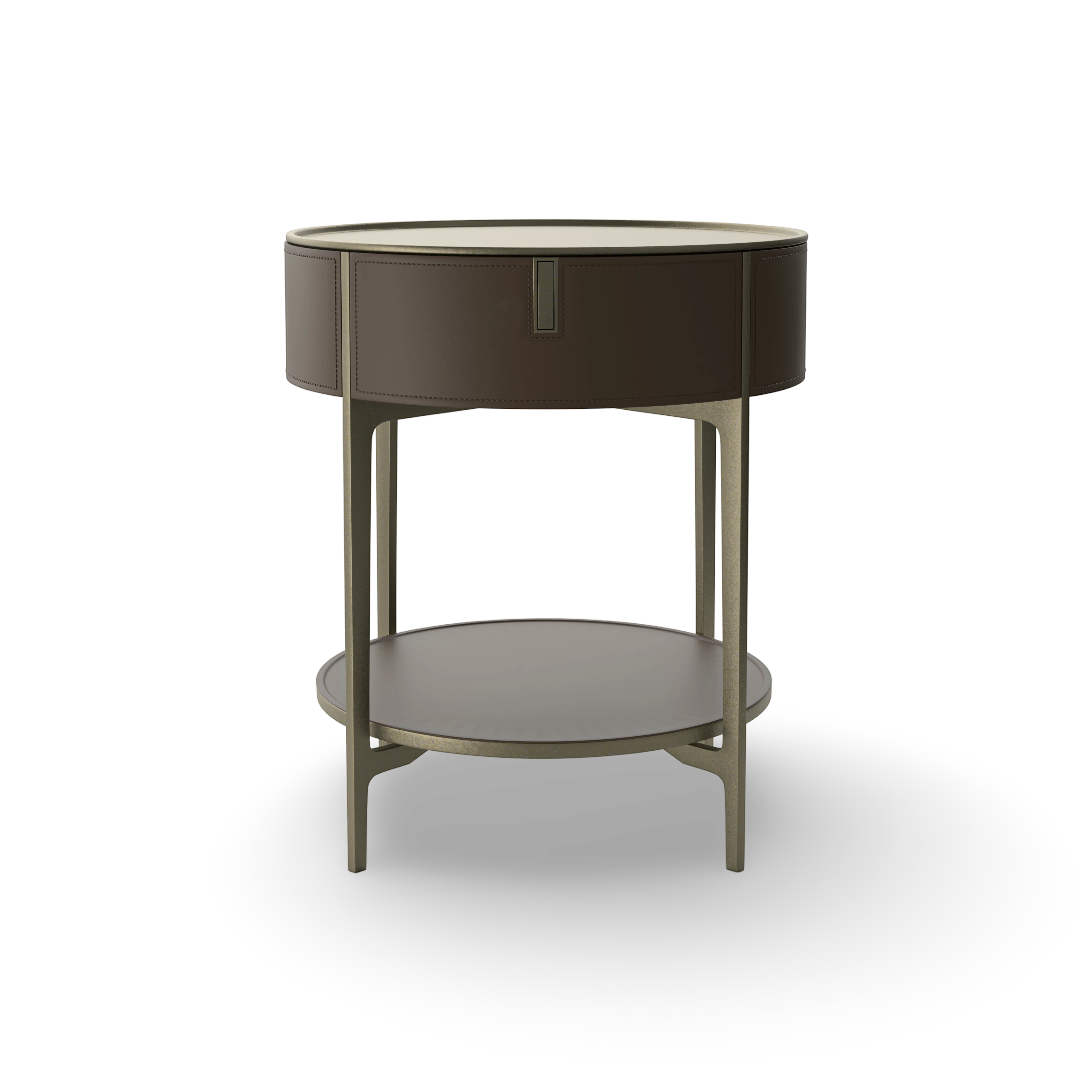 Round SR01 Bedside Table - Hide (Coffee)/Champagne Steel