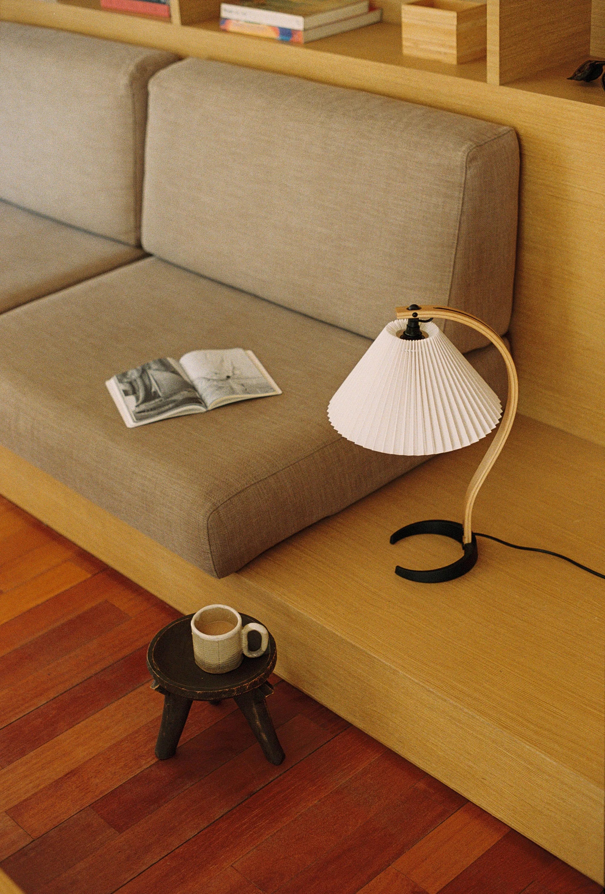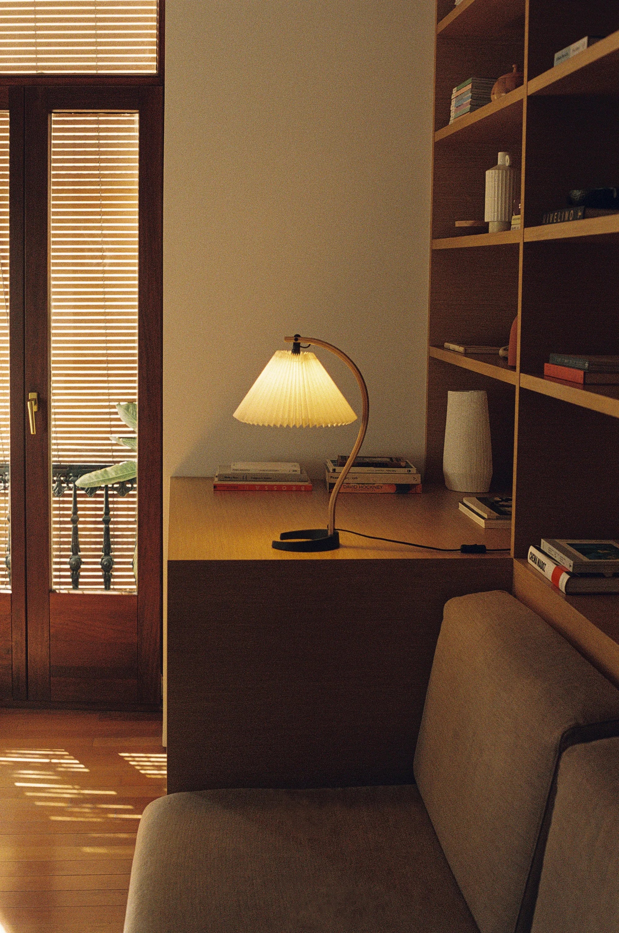 The Timberline Table Lamp offers design lovers a desktop edition of Mads Caprani’s much-loved floor lamp. Faithful to Caprani’s original question mark inspired design, this scaled down format retains the signature swannecked shape and playful 1970s Scandinavian aesthetic, with subtle adjustments to optimize stability and functionality. Crafted with precision, the lamp features a bent-wood spine made from nine layers of oak and birch, an adjustable shade allowing users to control the light direction, and a solid castiron crescent base for stability. The lamp is easy to move around the home, casting a localized light and creating a warm and intimate ambience wherever it is placed. Delivered flatpack for easy assembly, the replaceable components ensure longevity and ease of maintenance.