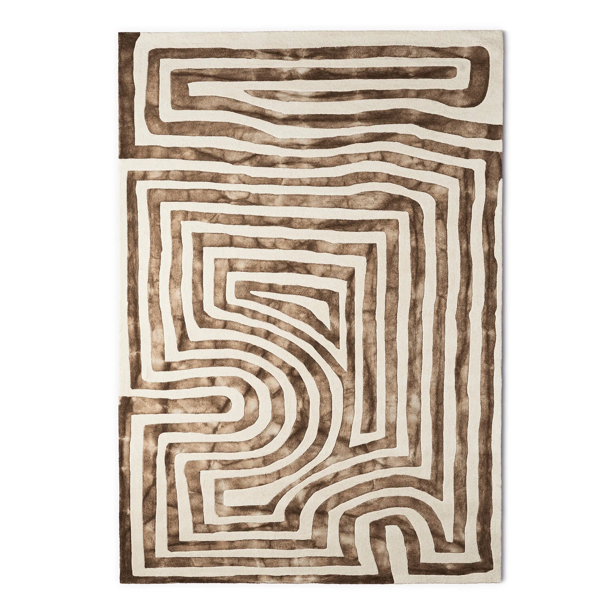 Psychedelic Labyrinth Rug Beige is a hand-tufted rug made of 100% wool. A cotton backing has been applied to the back of the rug. This ensures that the rug retains its shape and increases the durability and lifespan of the rug. Each rug is individually dyed, making each rug unique as the colors change in hue and intensity. Psychedelic Labyrinth Beige Dip Dye Rug is available in sizes 200 x 300 cm and 300 x 400 cm. In addition to this beige model, there is also a dark gray variant in the same series.