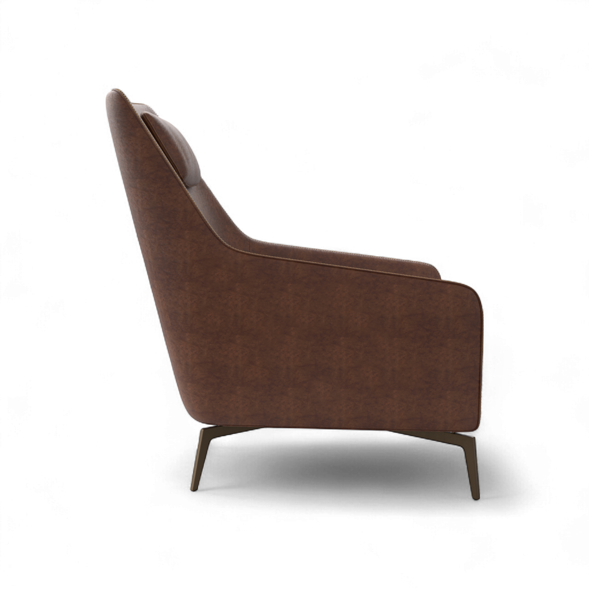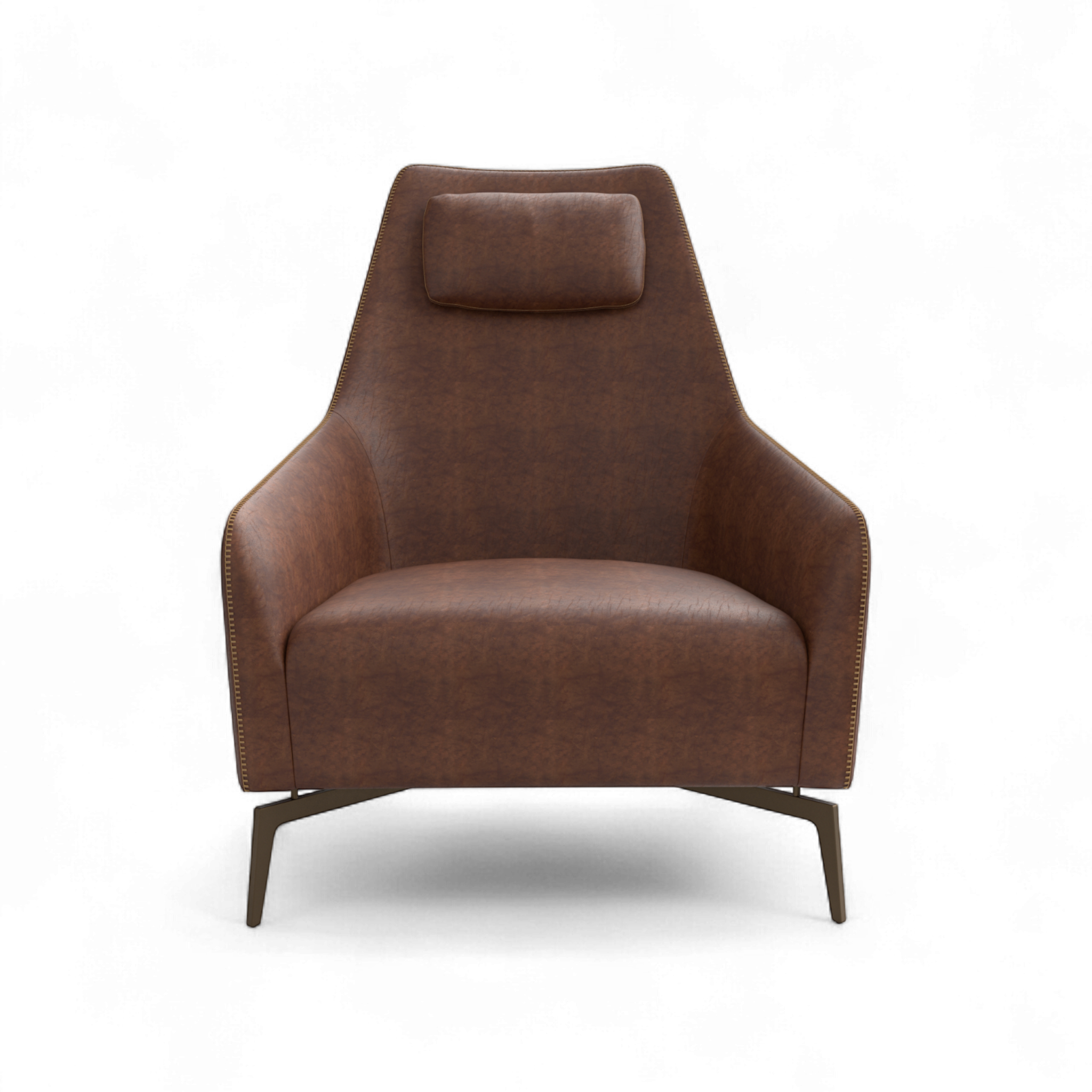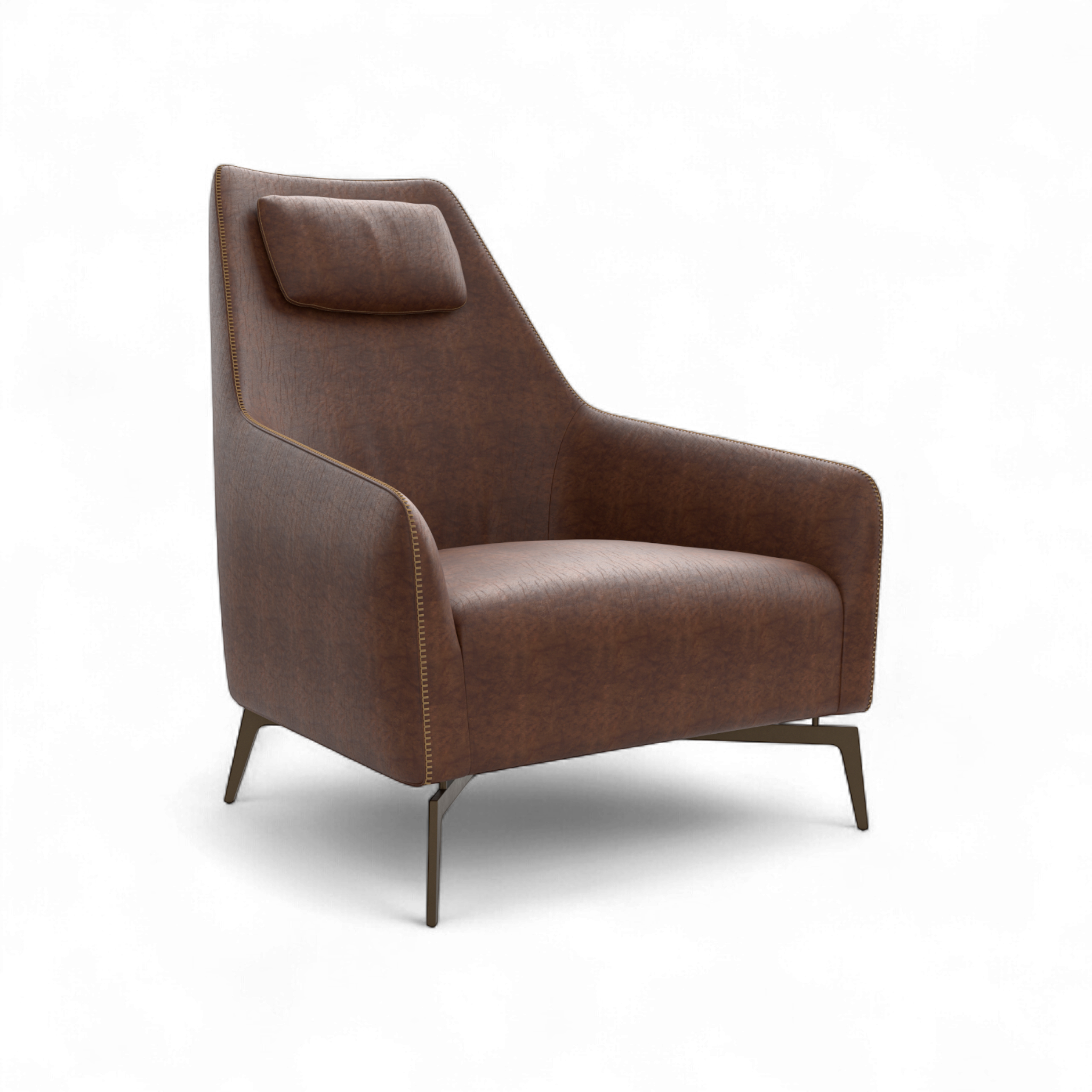 The softness of the leather, hand-picked and of the highest quality combines with the sinuosity of the chair shape in this new elegant piece which has a distinctive style. A high, wrap-around backrest offers moments of great comfort and relax.