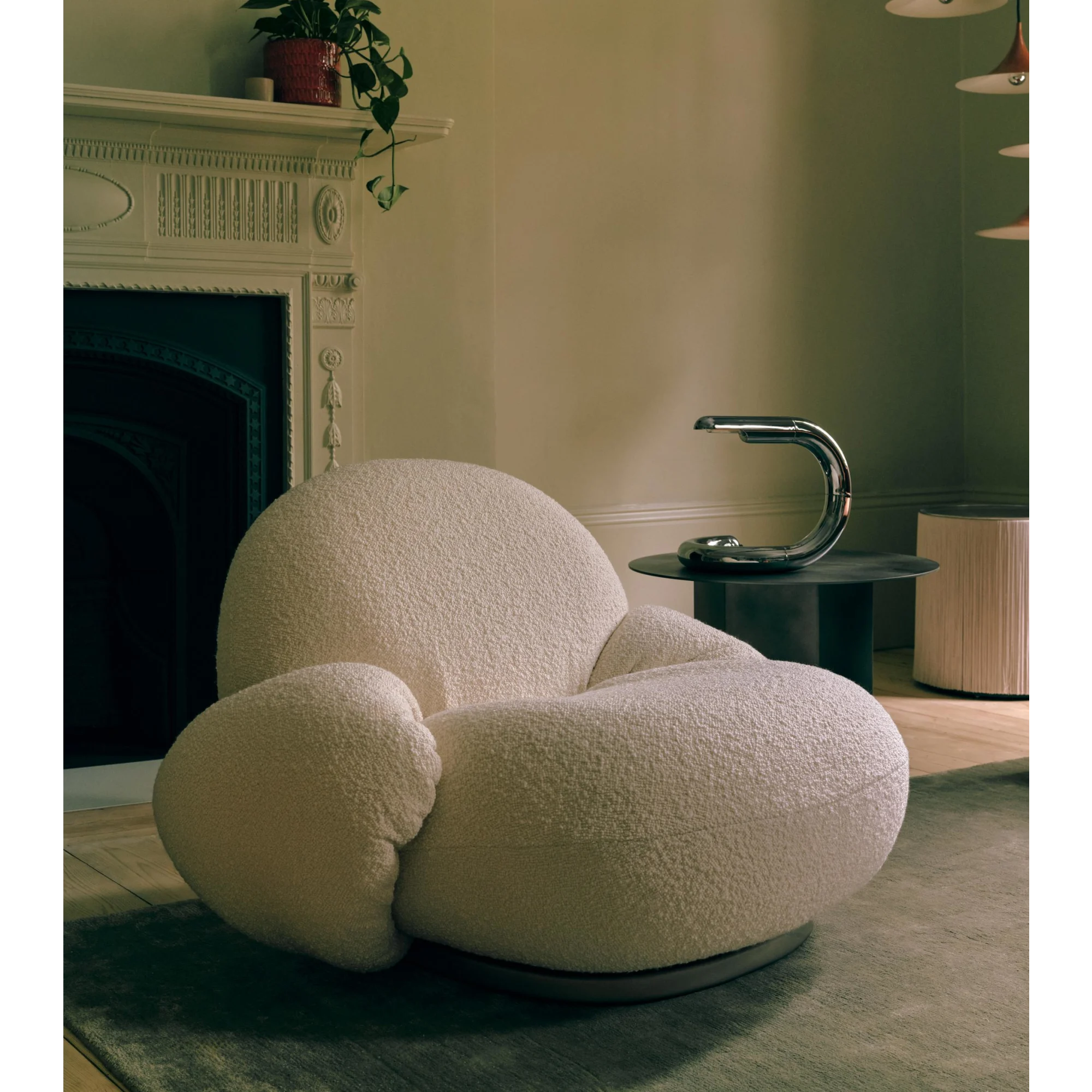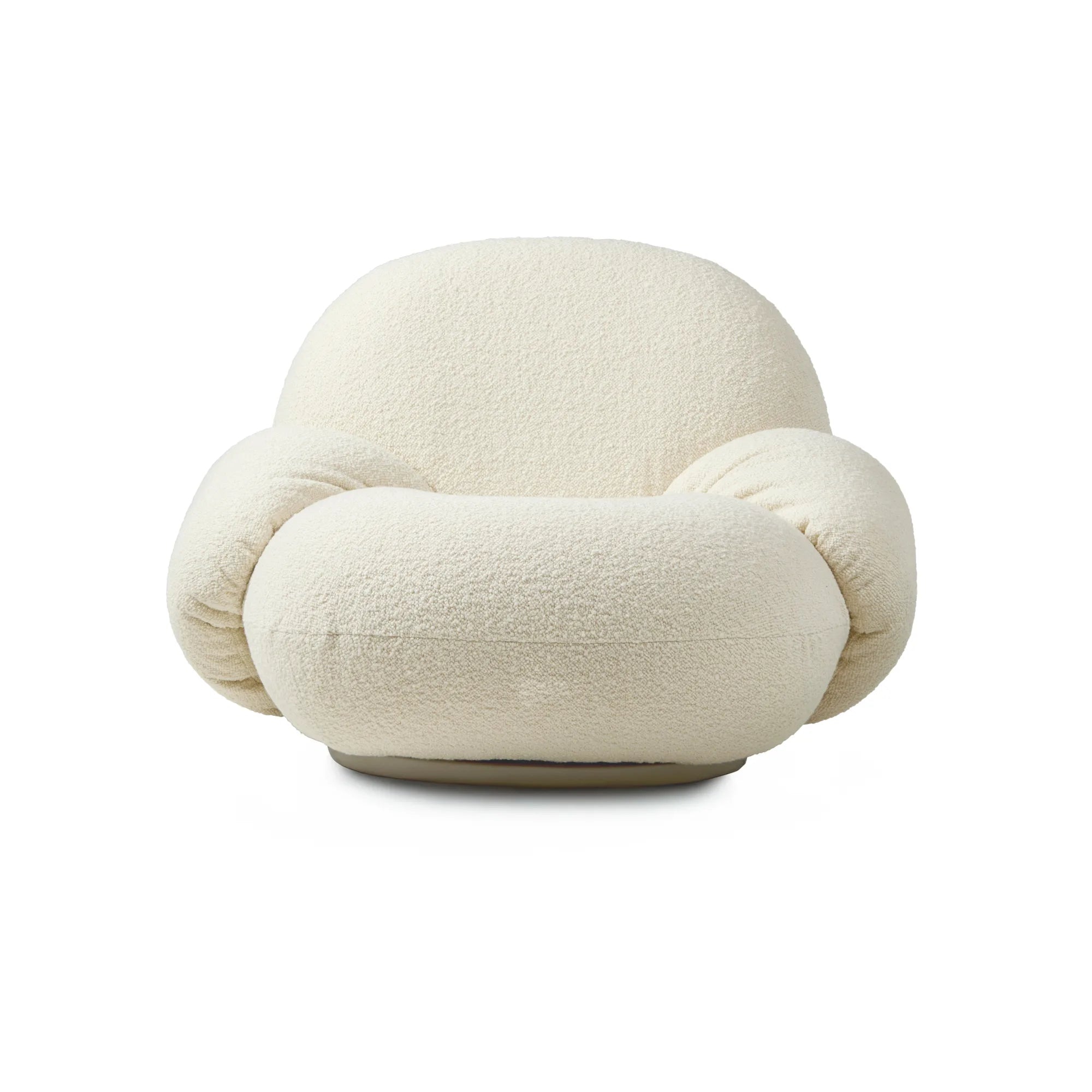 Legendary French designer Pierre Paulin originally designed the Pacha Lounge Chair in 1975. Paulin designed the chair in harmony with the changing design style of its period, replacing the austerity of post-war design with a new, vigorous approach. Paulin managed to give a real elegance to the rounded forms of the Pacha Lounge Chair by finding the perfect proportions, raising it lightly on its base and tracing in the foam and upholstery with stitching lines inclined inwards.