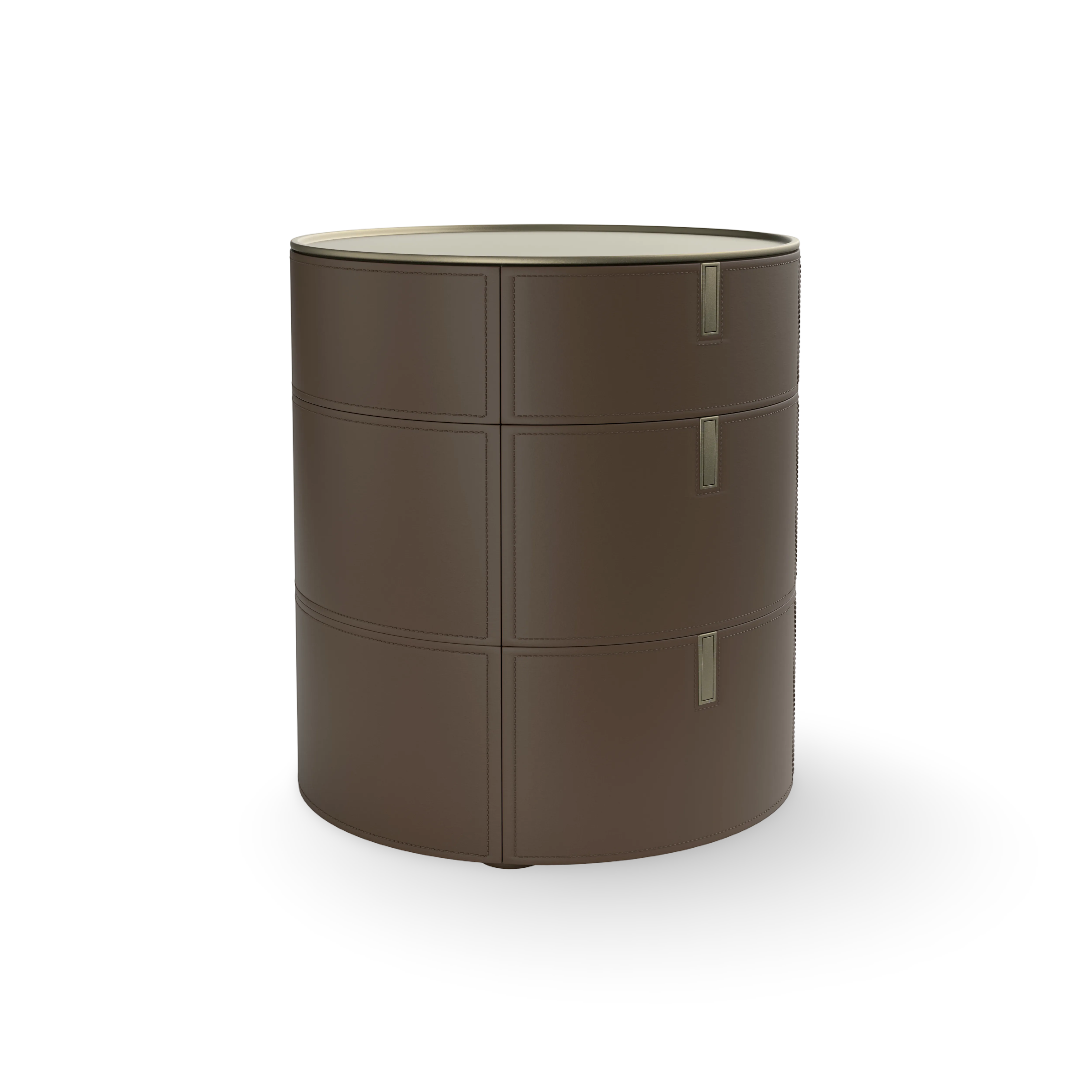 21. Round SR01 Bedside Table - Hide (Sand)/Bronze Steel AED 12,240