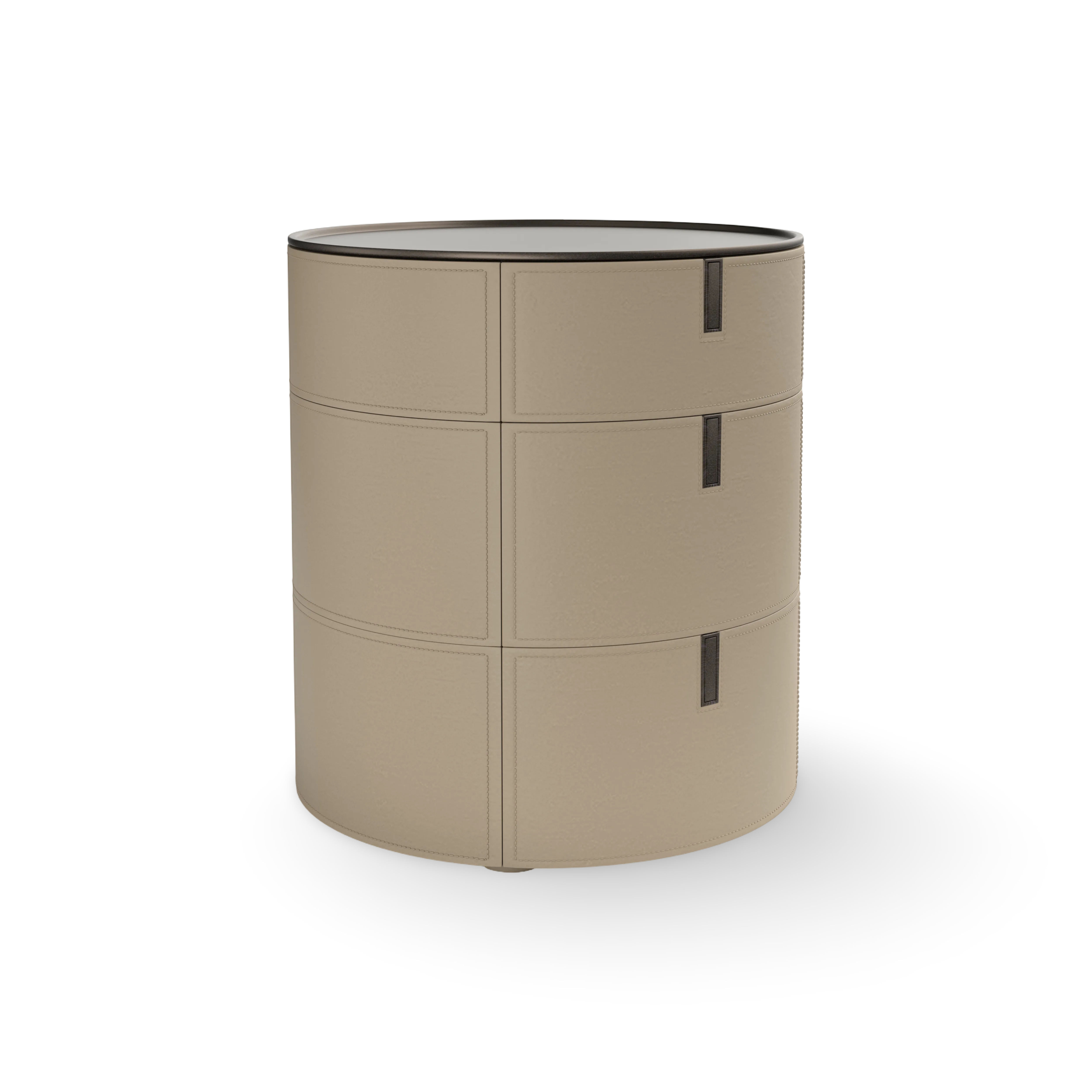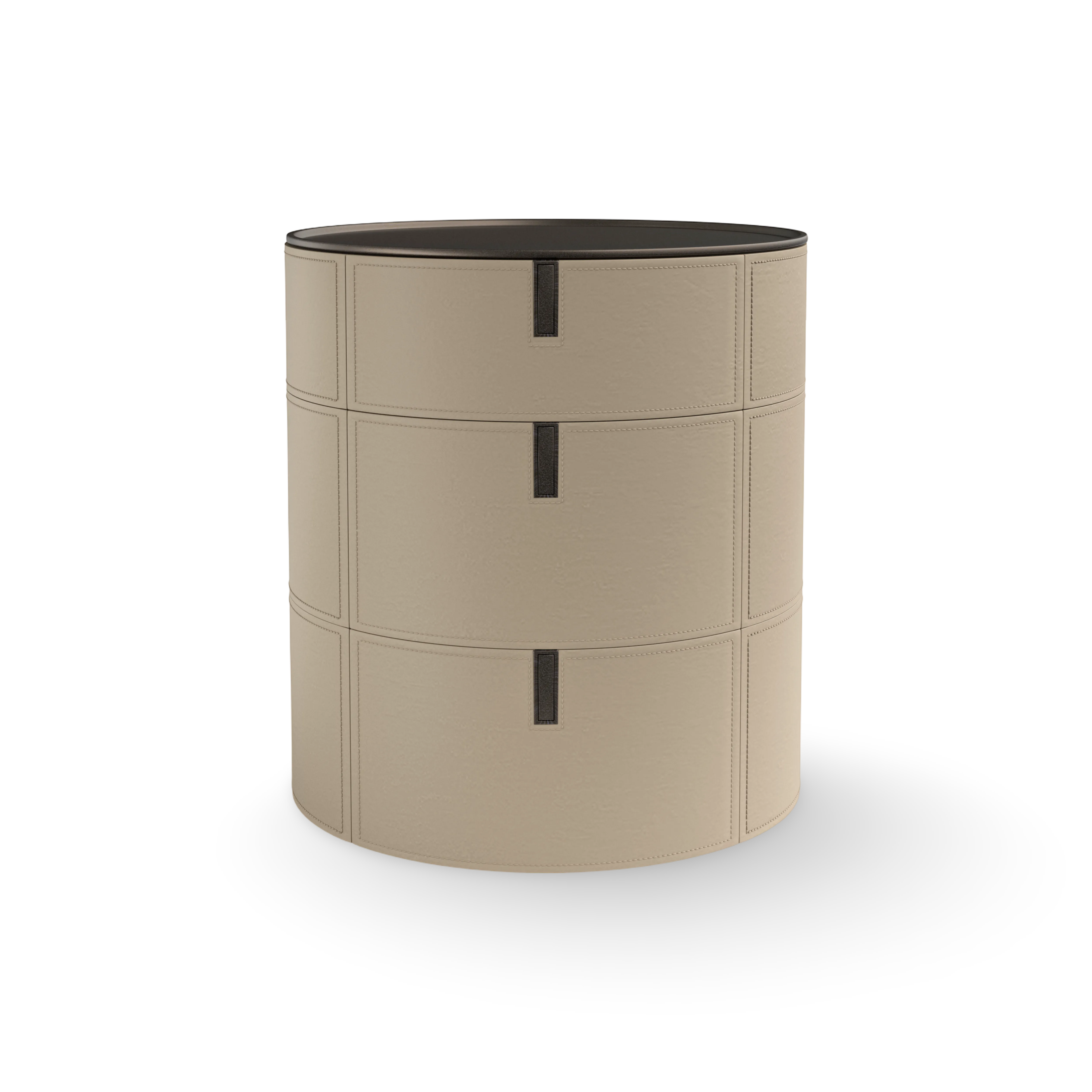 16. Round SRO2 Chest Of Drawer - Hide (Off White)/Titanium Steel AED 43,490