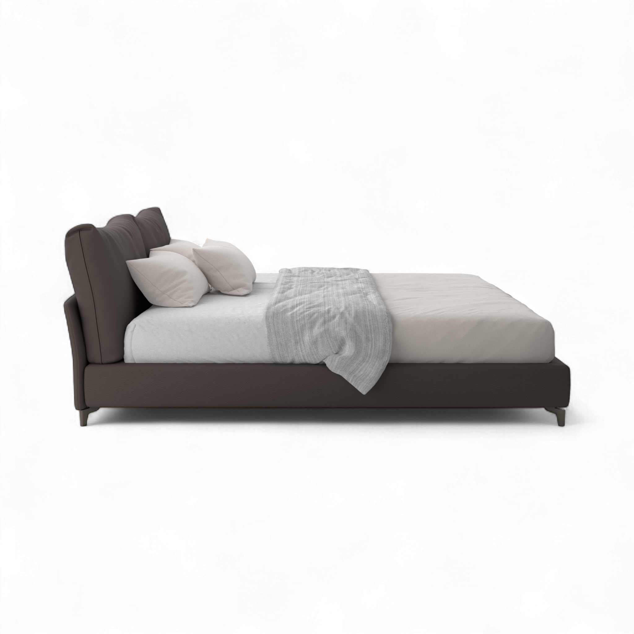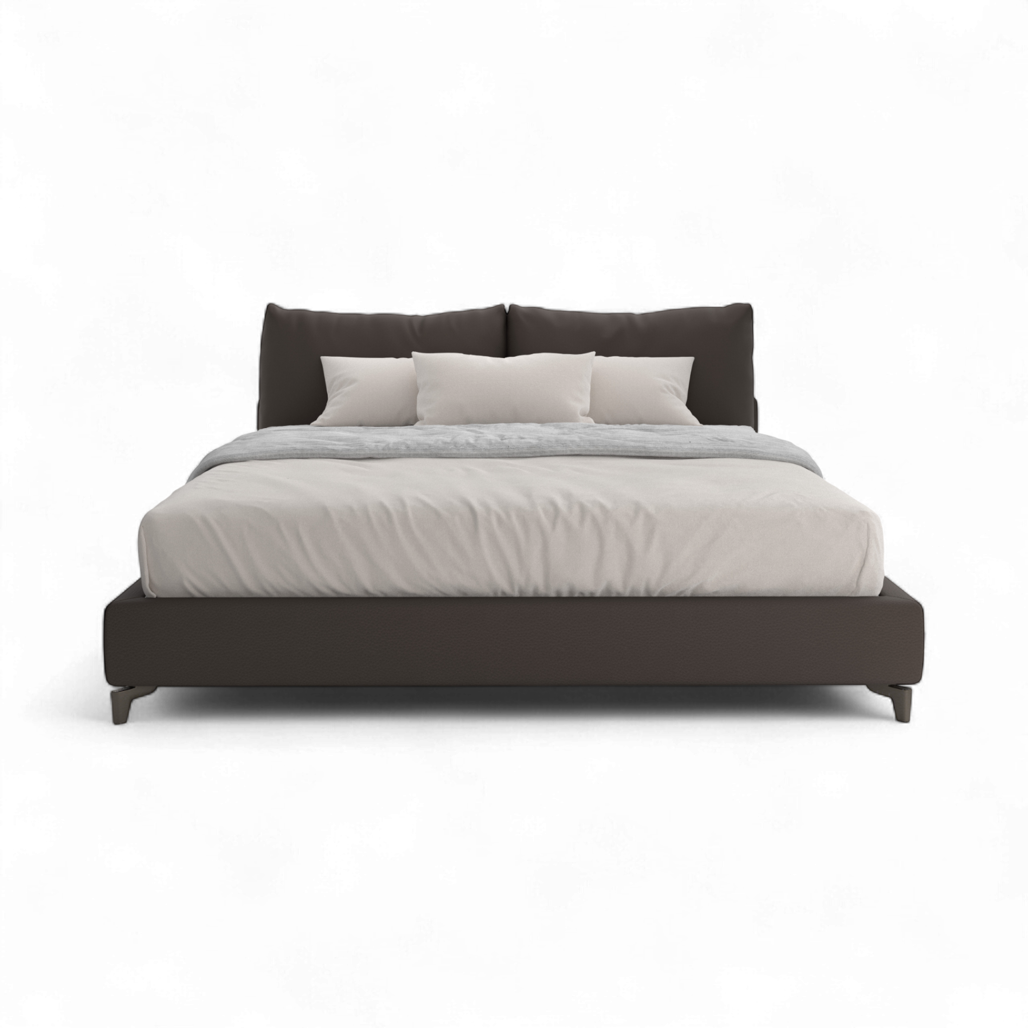 Absolute softness and ergonomic proportions for a bed with a timeless style. Oasi is a joy to behold and an invitation to relax: comfortable and welcoming with feather pillows and upholstery in leather or fabric. The Oasi bed has studied proportions, generous and sophisticated padding sartorial details. The bed is proposed in different sizes and is also available in the version with base with container, useful for storing pillows, blankets and linen. Mattress not included in the price.