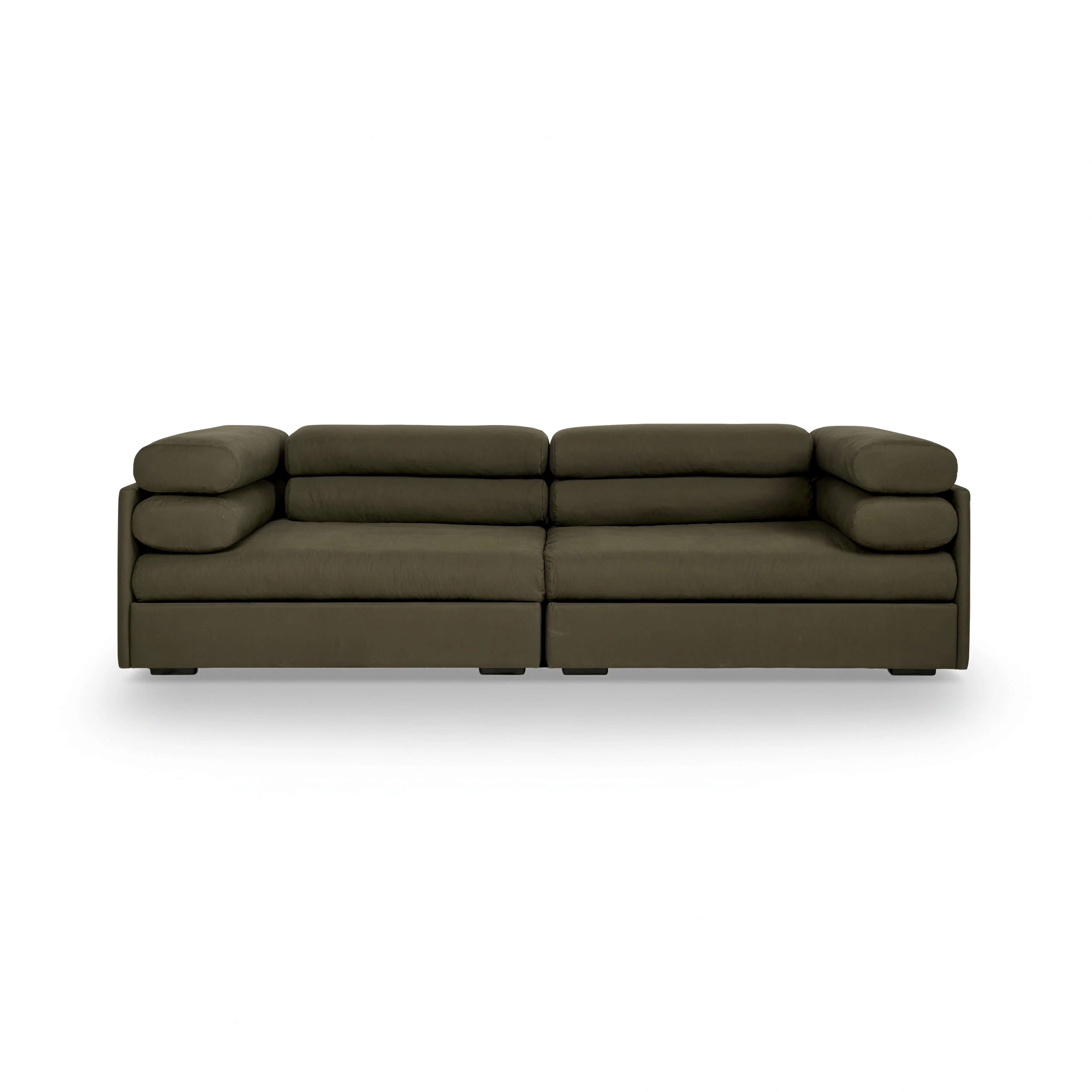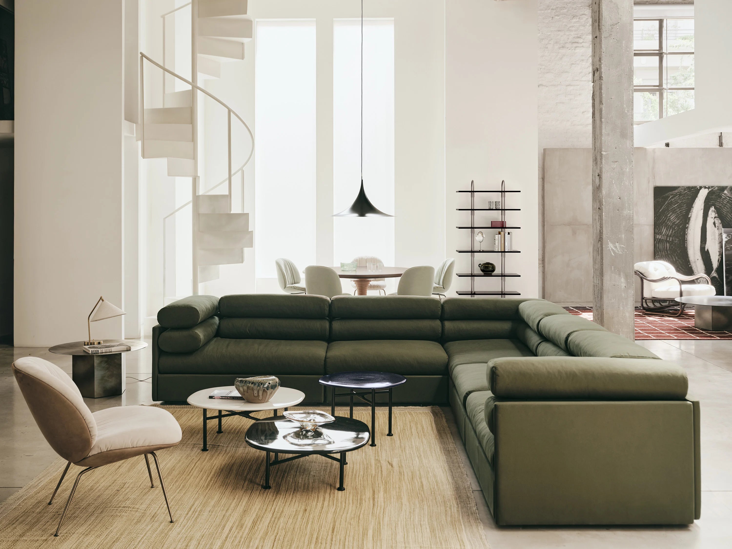 Expressing an inviting softness with architectural structure, the Elogio Sofa is one of the iconic furniture designs to emerge from the husband-and-wife studio of Tobia and Afra Scarpa. Created in 1974 as an evolution of the Erasmo sofa, it introduced a new modular approach to domestic living, allowing for multiple configurations depending on the shape, scale, and style of the space. Revisited by Tobia Scarpa with GUBI five decades later, this edition has been subtly upgraded to enhance comfort and finesse the geometry of the design. Its interchangeable cushions can be reoriented to suit different needs and upholstery options, including GUBI’s new Reales and Fustagno fabrics, enhance the sofa’s tactile and visual character.