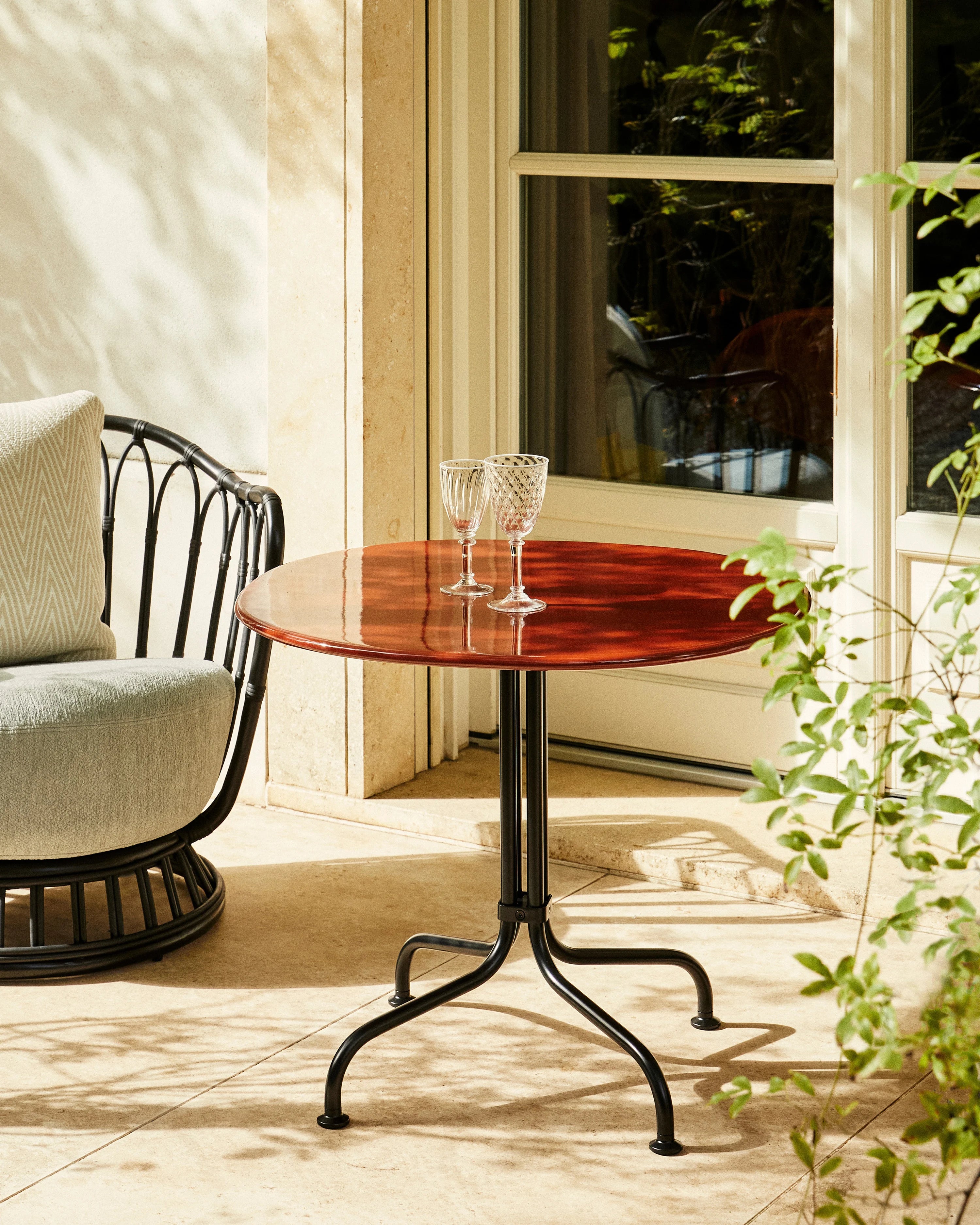GUBI’s new Carmel Bistro Tables from OEO Studio blend the Californian-inspired vibrancy of their coffee tables with the timeless elegance of European café culture. Designed for both indoor and outdoor use, the durable and resilient tables are perfect for both casual gatherings and formal occasions. Like the Carmel Coffee Tables, each features a 75x75 cm tabletop in glazed Italian stoneware, supported by a tree-like assembly of four semi matt black stainless steel legs. Available in two heights: lounge and dining; and two colorways: Red Rock and Clam White, Carmel Bistro Tables bring a sophisticated café charm to every setting.