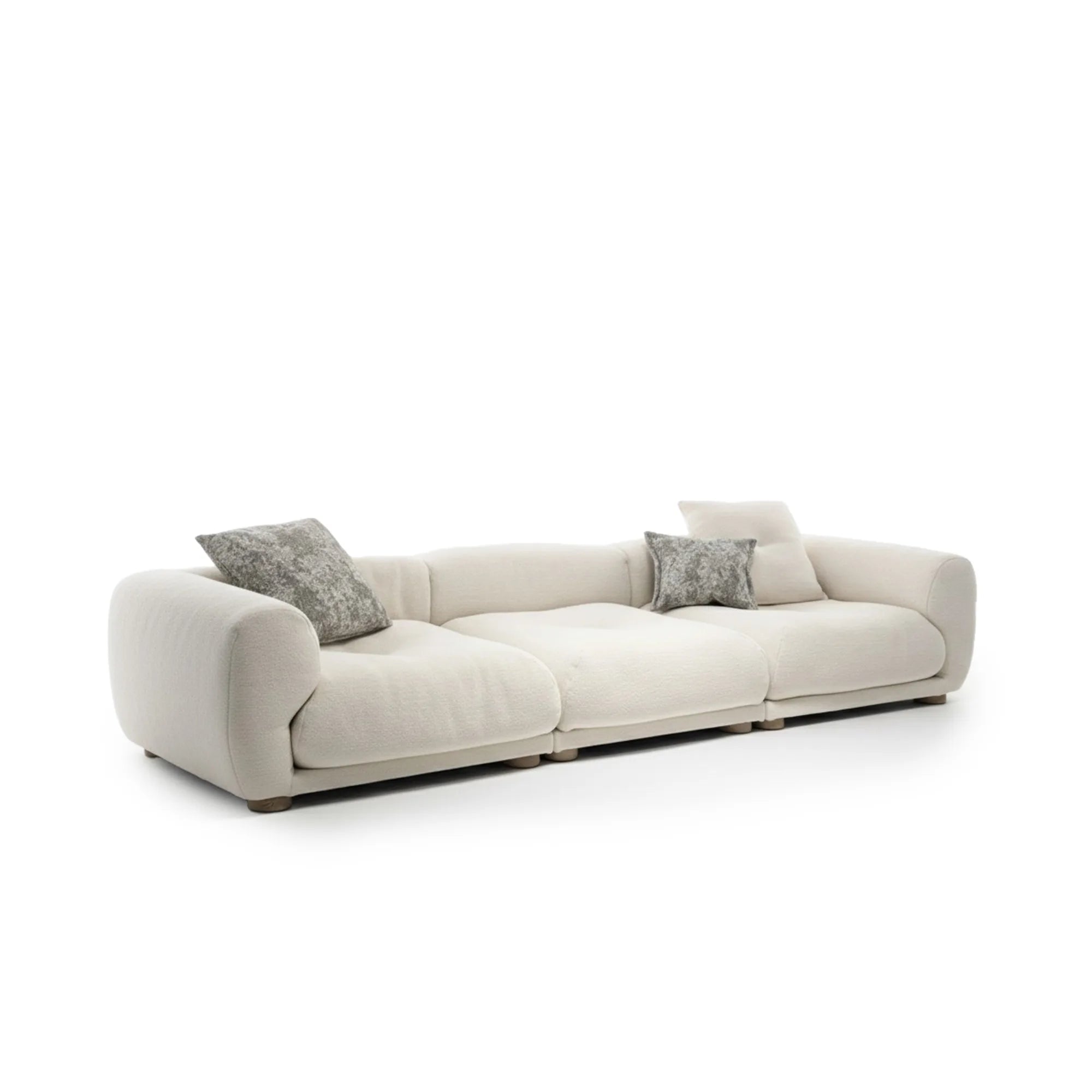 Me-Time is an island of comfort, the result of the designers’ multidisciplinary approach, capable of bringing to life a piece of furniture that becomes the focal point of a domestic landscape shaped by generous proportions. Including 3 cushions - 60x60 cm in Camy A5461, 60x60cm in Nembro A7058 and 45x40 in Nembro A7058.