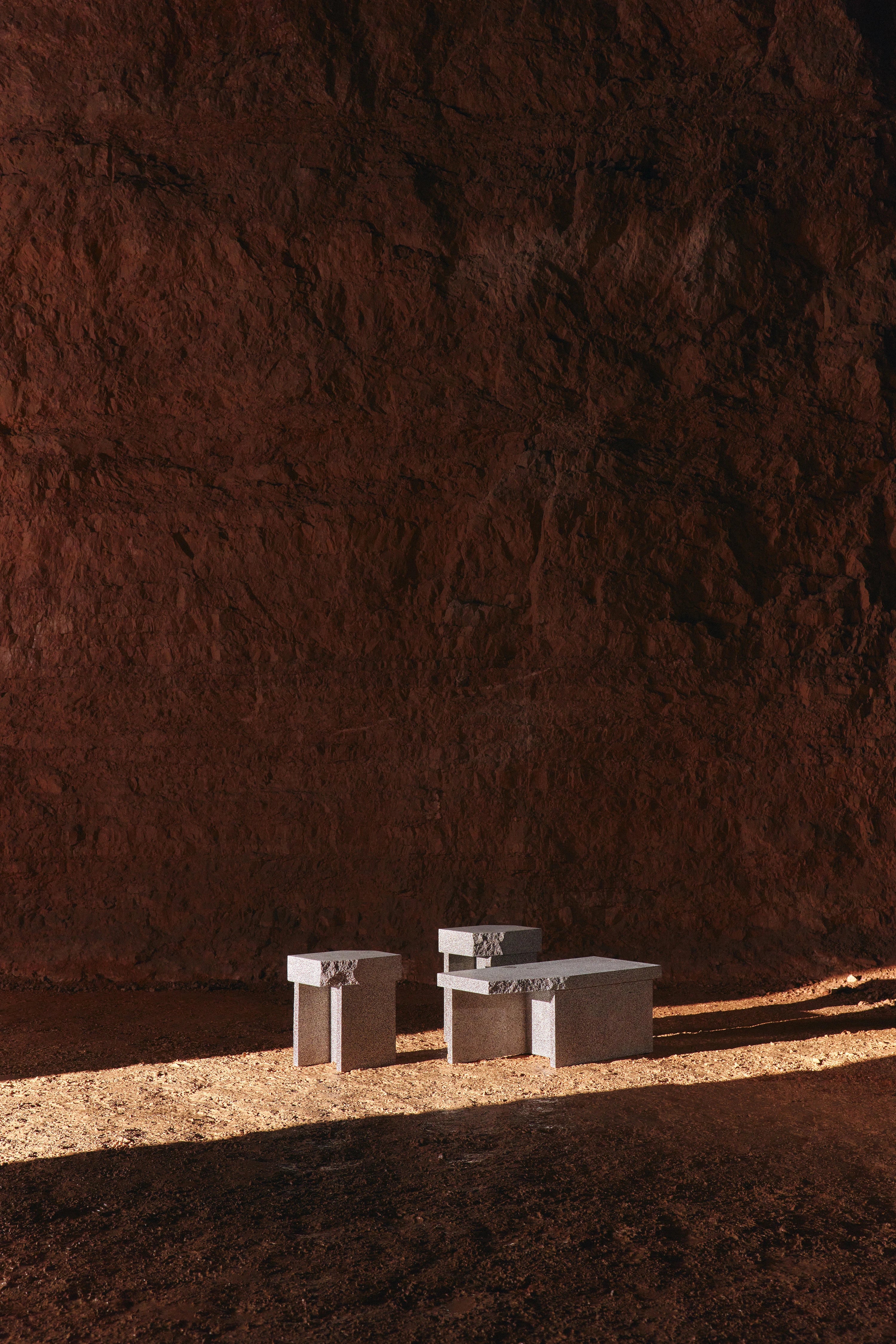Kern is an expressive coffee and side table system designed by Monica Förster for Fogia, made from Outt—an innovative material composed of upcycled marble waste. With 85% marble content, the material brings both sustainability and richness to the design. Kern’s sculptural form features hand-broken corners and a brushed, textured surface that invites touch and highlights the stone’s natural beauty. Despite its simplicity—just four stone slabs—it has a dynamic presence that feels both ancient and contemporary. Each table is unique, blurring the boundary between furniture and art.