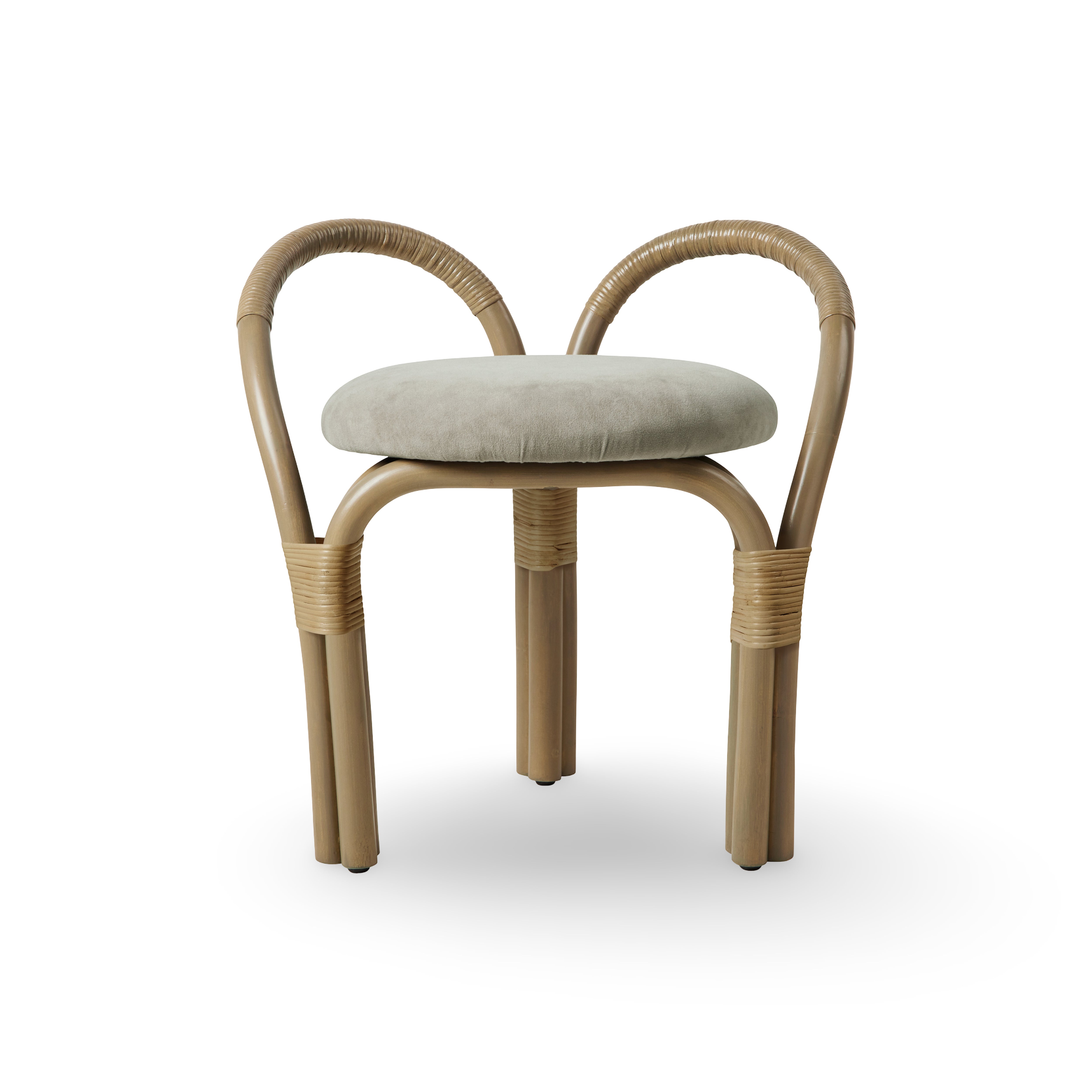 Designed for GUBI by Michele De Lucchi’s AMDL Circle, Bistra is a sculptural furniture collection that distills the classic bistro chair to its essential form, finding elegance and timelessness in its core structural elements. Comprising a dining armchair, a lounge chair, and a three-legged stool, the collection is rooted in its principal material: steam-bent rattan. Its visual language draws from the idea of organic growth, expressed in the tree-like contours of the legs, arms, and backrest, and echoed in the custom-designed upholstery, which features a botanical motif inspired by a Leonardo da Vinci fresco. Available in three frame colors and multiple upholstery fabrics, Bistra is a versatile seating collection that blends artisanal furniture-making traditions with exquisite contemporary craftsmanship.