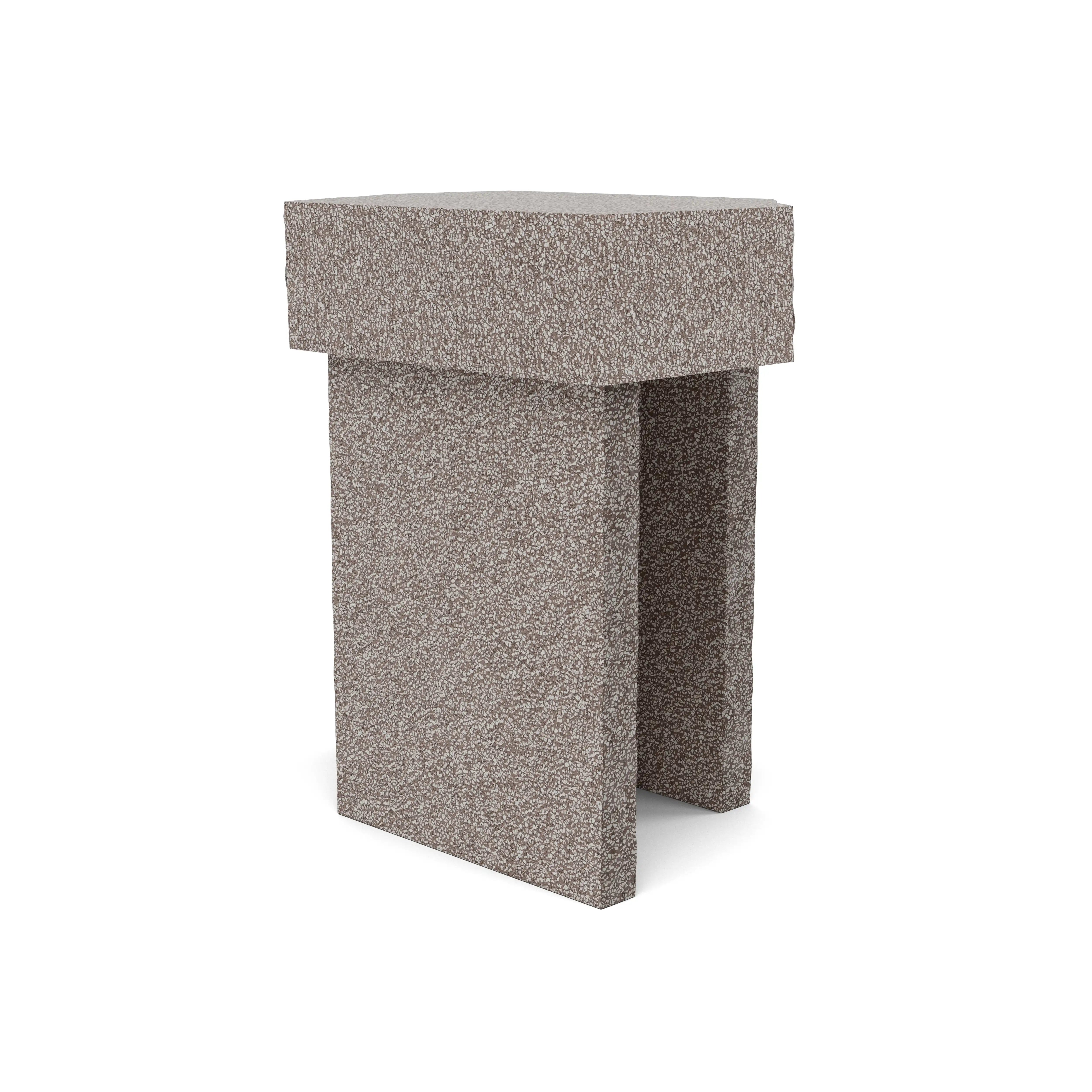 Kern is an expressive coffee and side table system designed by Monica Förster for Fogia, made from Outt—an innovative material composed of upcycled marble waste. With 85% marble content, the material brings both sustainability and richness to the design. Kern’s sculptural form features hand-broken corners and a brushed, textured surface that invites touch and highlights the stone’s natural beauty. Despite its simplicity—just four stone slabs—it has a dynamic presence that feels both ancient and contemporary. Each table is unique, blurring the boundary between furniture and art.