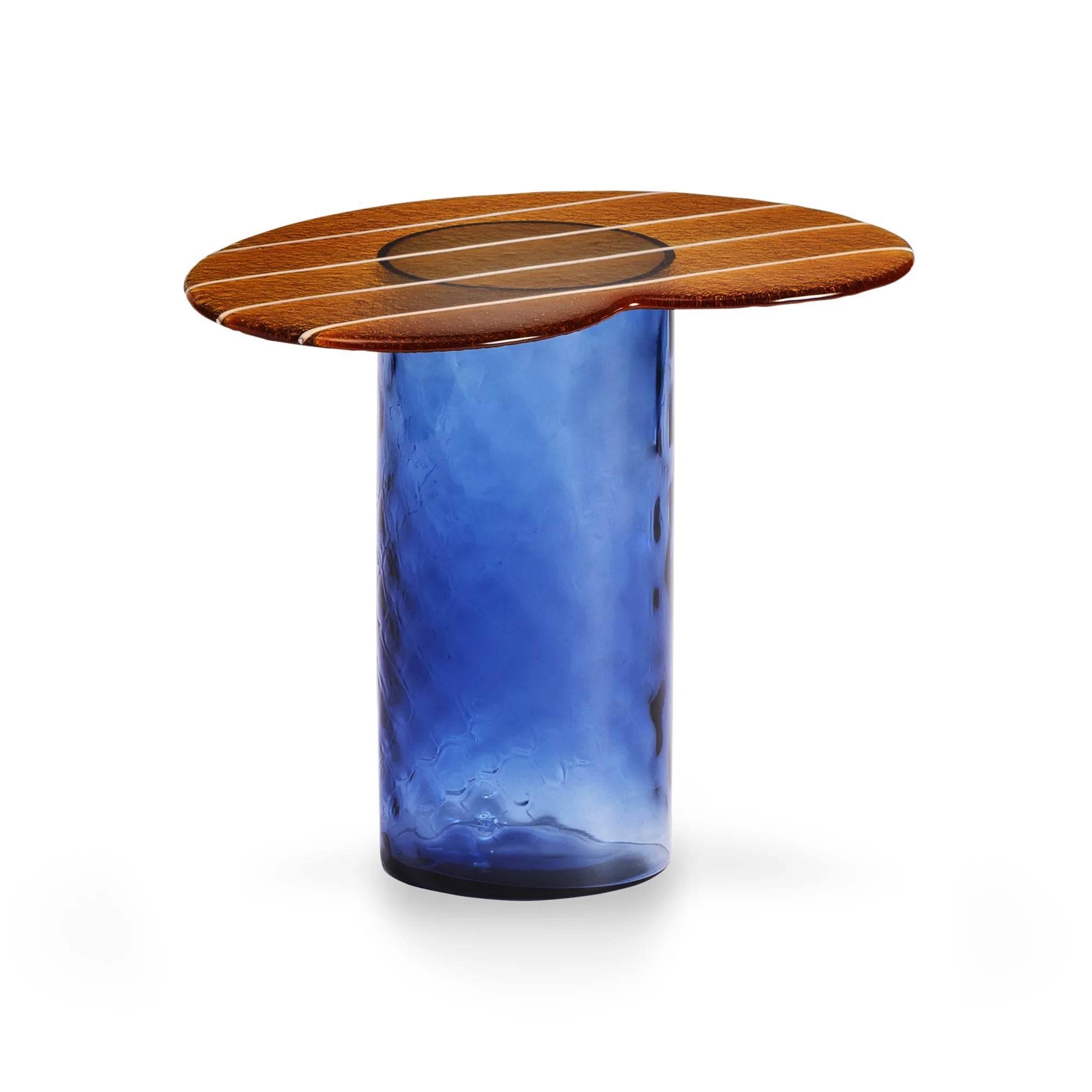 Striche TS 150 Side Table - Blu/Arancio Cast Glass